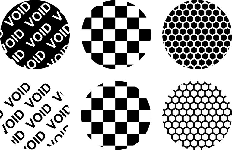 Production price per piece is defined immediately after your design is accepted and after you inform us about the number of pieces to produce. You can select or change the self-adhesive medium at this stage as the base is not linked in any way to the hologram picture design. If you decide to select the "Tamper evident film", i.e. "VOID" base, please inform us about the word you would like to see when the label is tampered with (see the word options). Besides the pre-manufactured films with selective peel-off options, we can produce the base material with any word or symbol based on your request; a custom-made self-destructive film is obviously more costly.